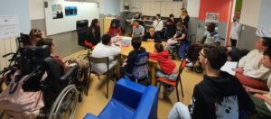 Rencontre avec les élèves de l’hôpital Pomponiana , présentation de mon travail numérique sur le thème » de nos usages du portable » et conversation philosophique sur le sujet avec les enfants.